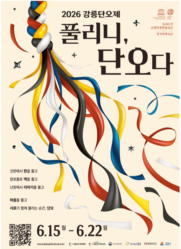 (사)강릉단오제위원회가 2026 강릉단오제 포스터를 공개했다. 올해 강릉단오제 주제는 '풀리니, 단오다'다.