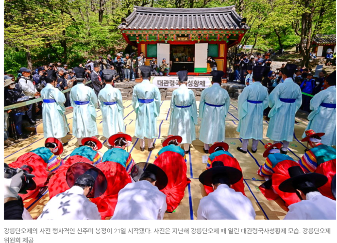 21일 유네스코 인류무형문화유산이자 국가무형문화재인 ‘강릉단오제’가 신주를 빚기 위해 쌀을 바치는 ‘신주미(神酒米) 봉정’으로 서막을 알렸다. 강릉단오제위원회는 강릉단오제의 시작을 알리는 신주미 봉정 행사를 21일부터 다음 달 21일까지 진행한다고 밝혔다.