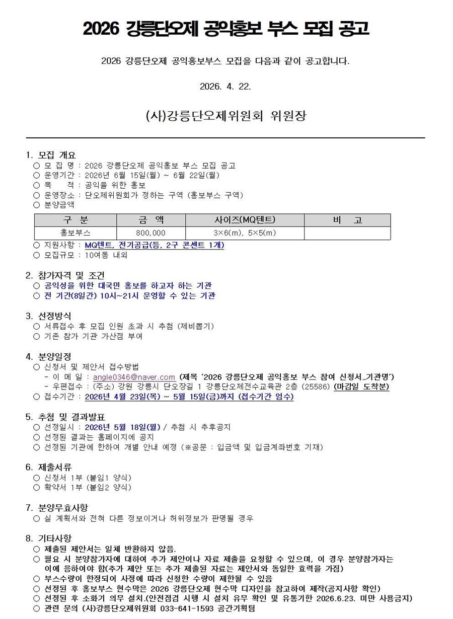 2026 강릉단오제 공익홍보 부스 모집 공고