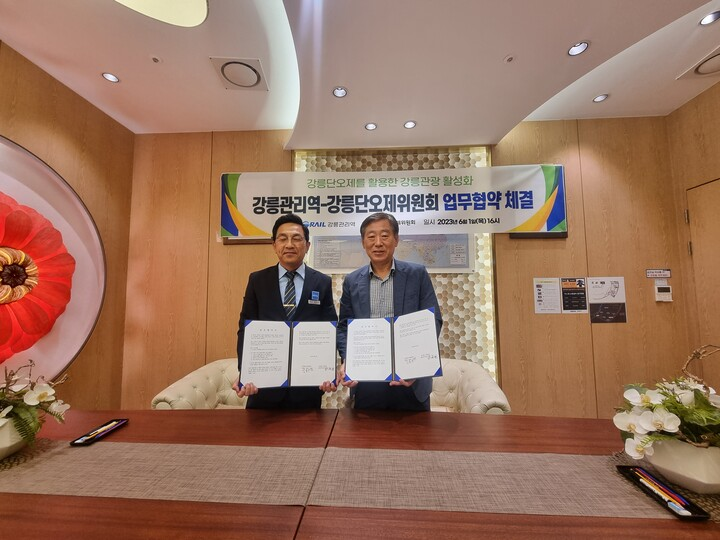 [이뉴스투데이 강원취재본부 김경석 기자] ㈔강릉단오제위원회(위원장 김동찬)와 한국철도 강원본부 강릉관리역(역장 정재현)은 1일 강릉역 접견실에서 단오제를 활용한 철도여행 상품개발 및 지역경제 활성화를 위한 협약을 체결했다.