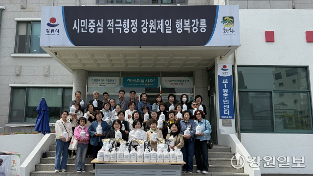 강릉시 교1동(동장: 강춘랑) 주민들과 자생단체, 공무원 등 약 80여 명은 24일 주민센터에서 천년 축제 '2025 강릉단오제'에서 쓰일 신주를 빚는 데 쓰일 쌀 봉정 릴레이 행사를 가졌다.