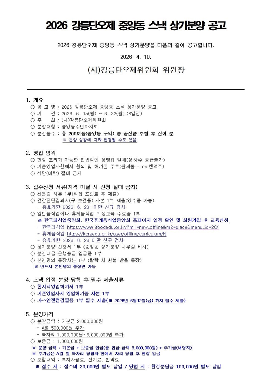 2026 강릉단오제 중앙동구역 분양 공고 (스낵)