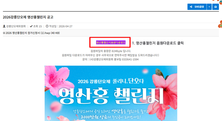 2026 강릉단오제 영산홍챌린지 음원다운로드 방법