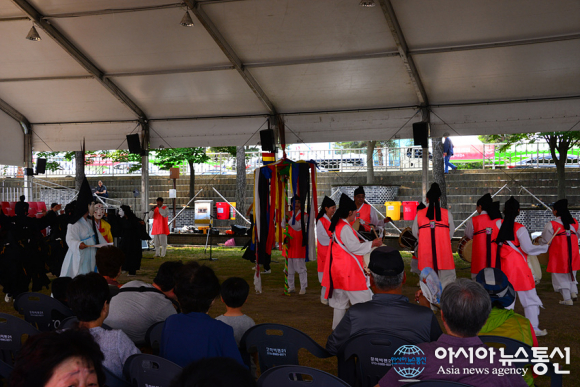 | 강릉단오제 첫 프로그램으로 관노가면극을 공연하고 있다. 첫날 행사에는 야단법석 타악 퍼포먼서, 교동농악대 등의 다채로운 공연이 펼쳐지고 오후 10시 단오섬에서 불꽃놀이가 있을 예정이다. |