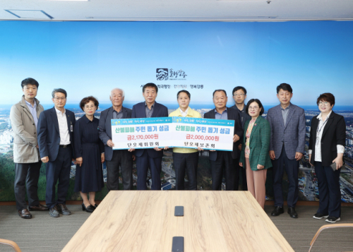 강릉단오제위원회(위원장:김동찬)와 강릉단오제보존회(회장:빈순애)는 최근 강릉시청을 방문해 산불피해 주민 돕기 성금 217만원과 200만원을 각각 전달했다.