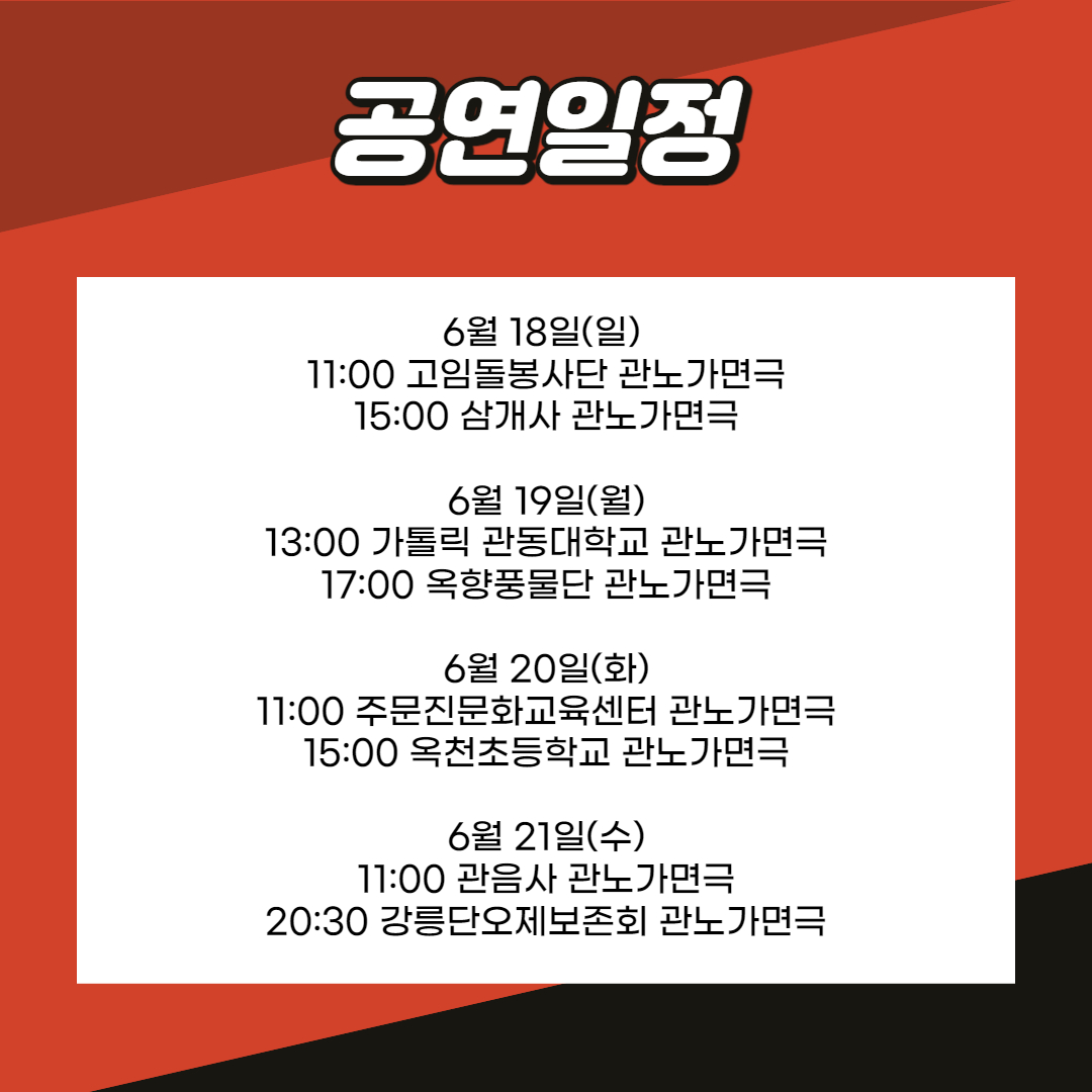 2023 강릉단오제 관노가면극 공연 일정을 안내드립니다.