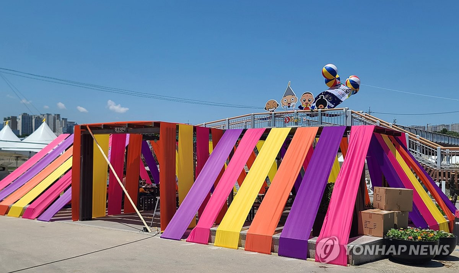 6일 개막하는 천년 축제이자 유네스코 인류무형문화유산인 '2024 강릉단오제'가 열리는 강릉시 남대천 단오장 일원에서 4일 막바지 준비가 한창이다.