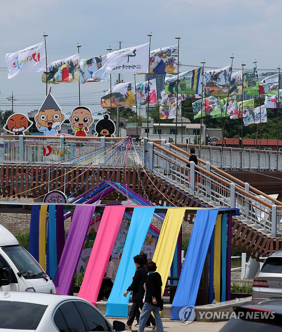(강릉=연합뉴스) 유형재 기자 = 유네스코 인류무형문화유산이자 국가무형유산인 천년 축제 '2025 강릉단오제'가 열리는 강릉시 남대천 행사장 일원에 개막 하루를 앞둔 26일 축제 분위기가 고조되고 있다.