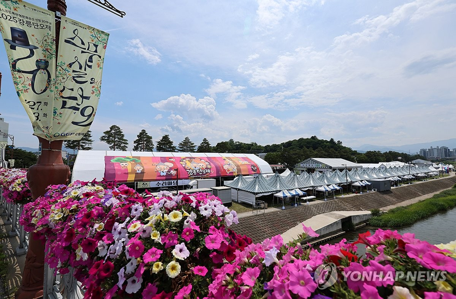 (강릉=연합뉴스) 유형재 기자 = 유네스코 인류무형문화유산이자 국가무형유산인 천년 축제 '2025 강릉단오제'가 열리는 강릉시 남대천 행사장 일원에 개막 하루를 앞둔 26일 축제 분위기가 고조되고 있다.