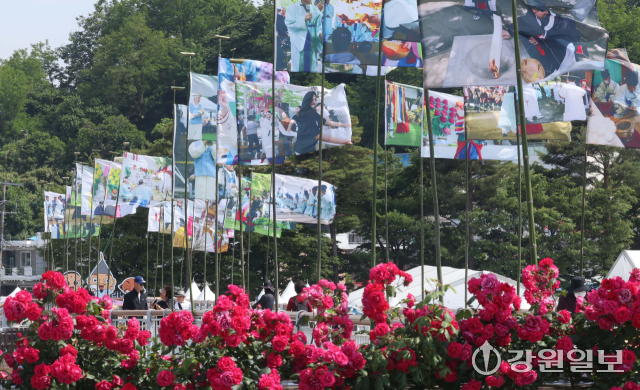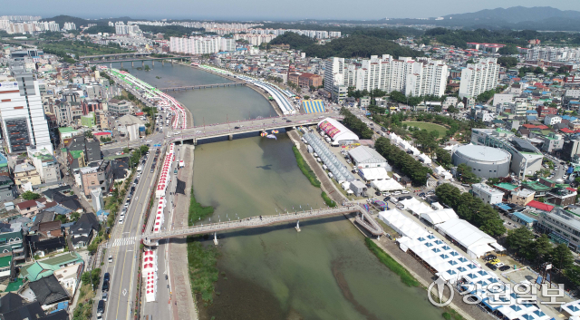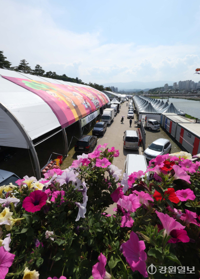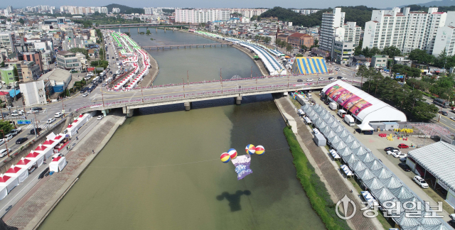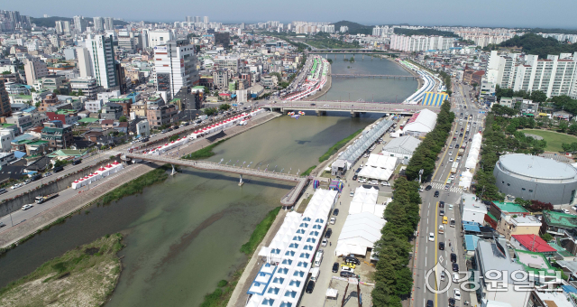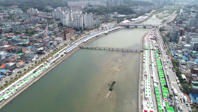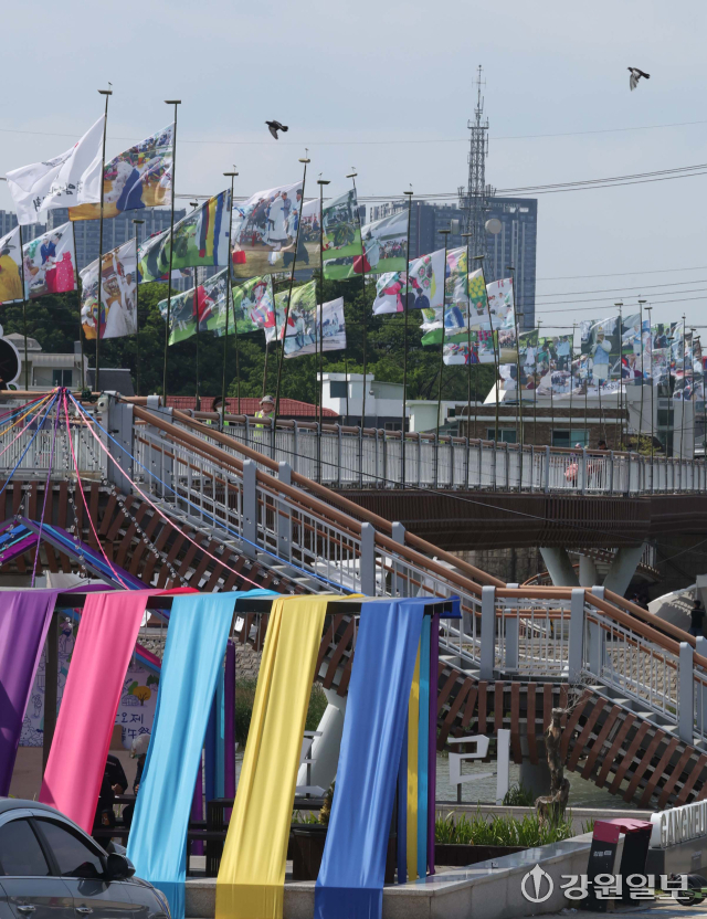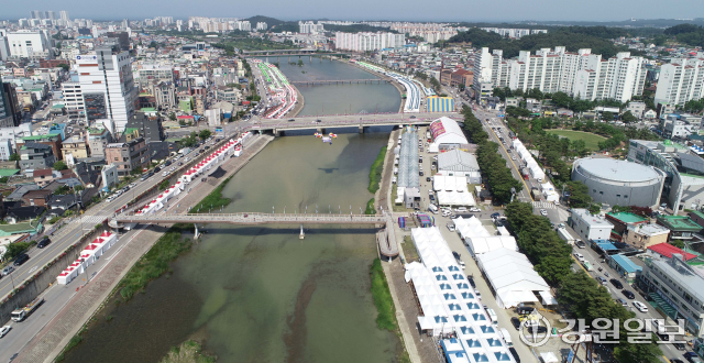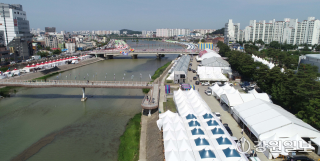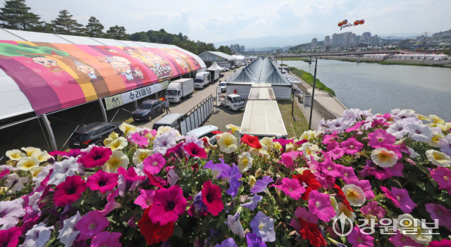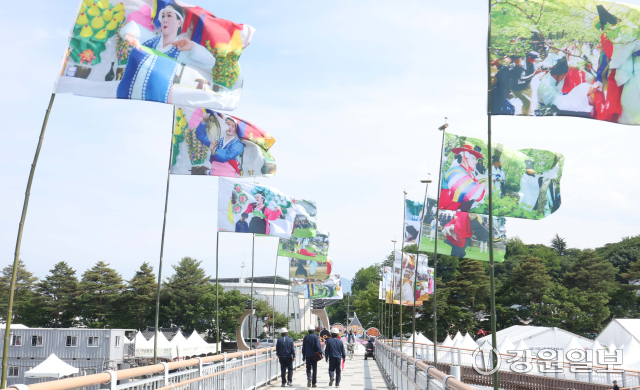 유네스코 인류무형문화유산이자 국가무형유산인 천년 축제 '2025 강릉단오제'를 앞두고 26일 강릉시 남대천 행사장 일원에 무대와 부스가 들어서는 등 축제 분위기가 고조되고 있다. 올해 강릉단오제는 '스무 살, 단오'를 주제로 27일부터 6월 3일까지 열린다.
