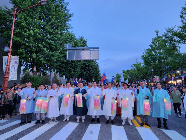 29일 강릉시내 중심가∼남대천 단오장을 잇는 1.5㎞구간에 펼쳐진 ‘신통대길 길놀이’에는 읍·면·동 주민들과 수만명 시민·관광객이 연도에 운집했다. 도심은 강릉단오제의 주제곡 영산홍가가 울려펴지면서 단오 분위기를 고조시켰다.